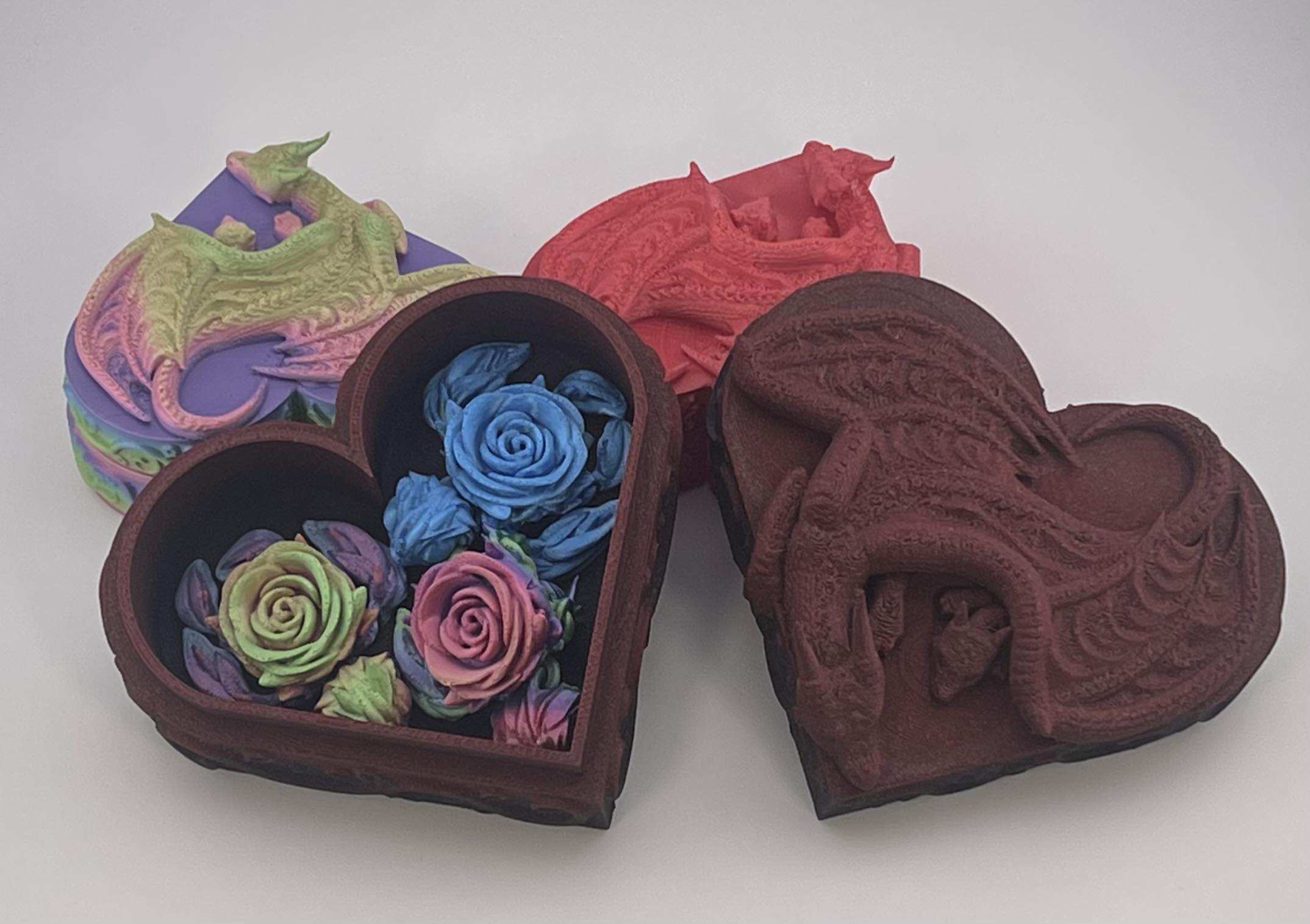HEART SHAPED DRAGON BOX W/ BABY ROSE TURTLES Medium